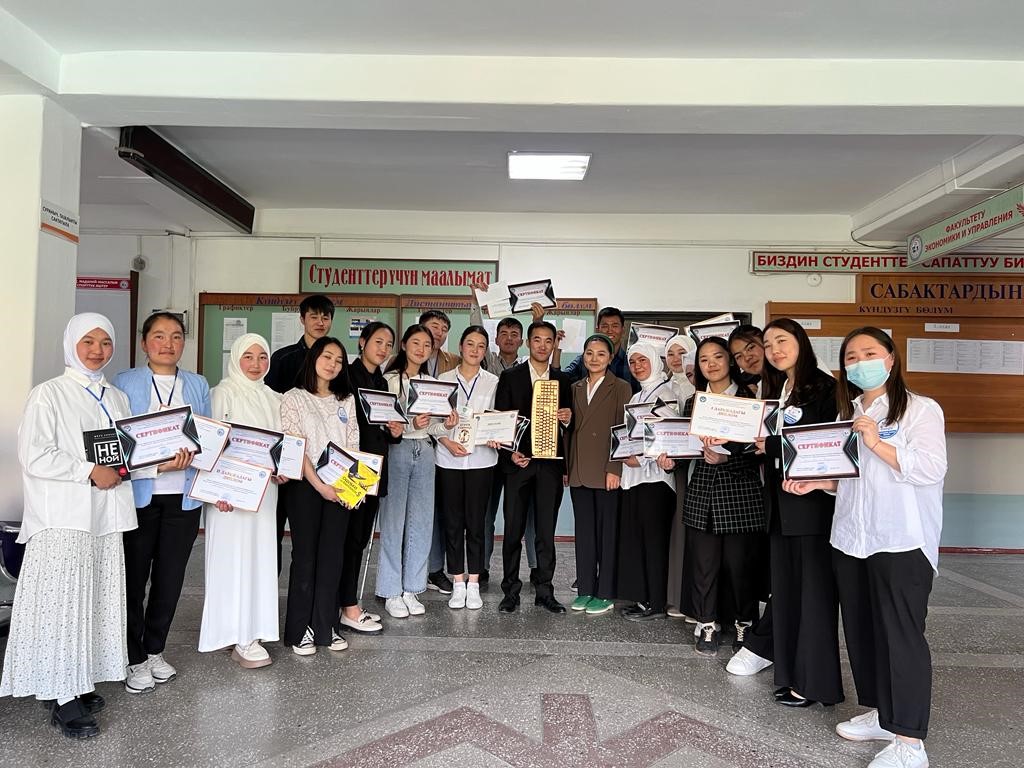 Помимо учебы, наши студенты активно участвуют в кружках, конкурсах, стартап-проектах и культурных мероприятиях, занимая призовые места. На одном из международных мероприятий дипломом I степени награждалась Акбарали кызы Нургүл победитель международного конкурса среди студентов Независимых Государств “Лучший студент СНГ” организованный Национальным инновационным научно-исследовательским центром “Bilim-orkenieti” совместно с Республиканским инновационным центром “Жаңа Казахстан”.