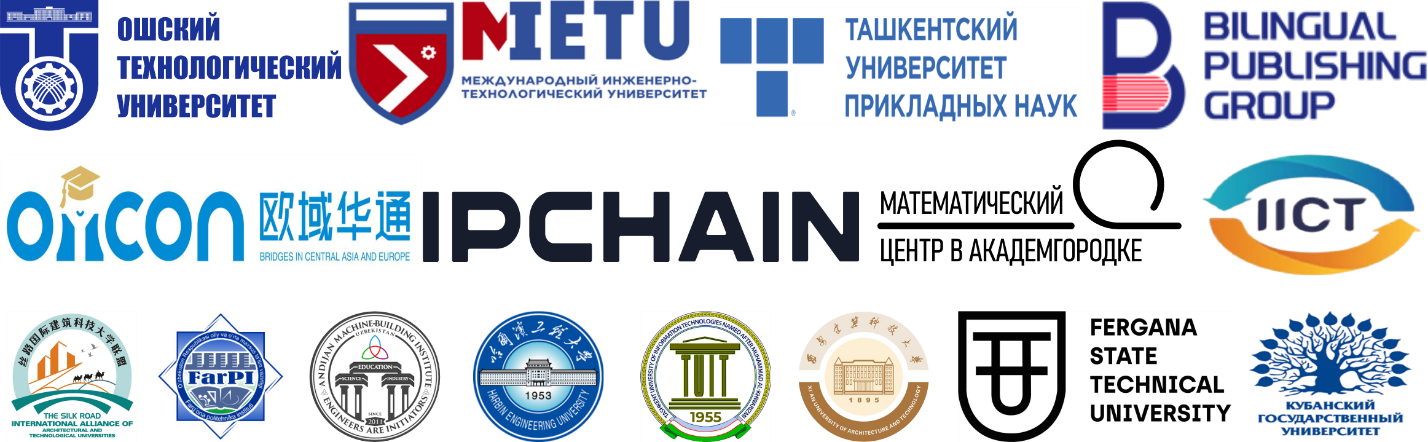 Организаторы конференции: Ошский технологический университет им. М. М. Адышева, Ouyu Huatong (Beijing) Trading Co. Ltd., (КНР), Международный Альянс архитектурно-технологических университетов на Шёлковом пути (КНР), Евразийский Сетевой Университет (ЕАЭС), Харбинский инженерный университет (КНР), Сианьский университет архитектуры и технологий (КНР), Издательская группа Bilingual Publishing Group (Сингапур), Международный математический Центр СО РАН (Россия), Кубанский государственный университет (Россия), Университет Кастамону (Турция), Ташкентский университет прикладных наук (Узбекистан), Ташкентский университет информационных технологий имени Мухаммада аль-Хорезми (Узбекистан), Навоийский государственный горный и технологический университет (Узбекистан), Ферганский государственный технический университет (Узбекистан), Андижанский государственный технический институт (Узбекистан), Международный инженерно-технологический университет (Казахстан), Институт информационных и вычислительных технологий (Казахстан), Представительство Ассоциации IPCHAIN в Кыргызской Республике, Кыргызско-Китайский университет (Кыргызстан).