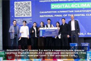 В рамках национального хакатона Digital4Climate.KG команда GreenVUZ Ошского технологического университета успешно разработала и представила цифровой экологический проект «Tree Tracker», направленный на инвентаризацию и мониторинг городских зеленых насаждений.